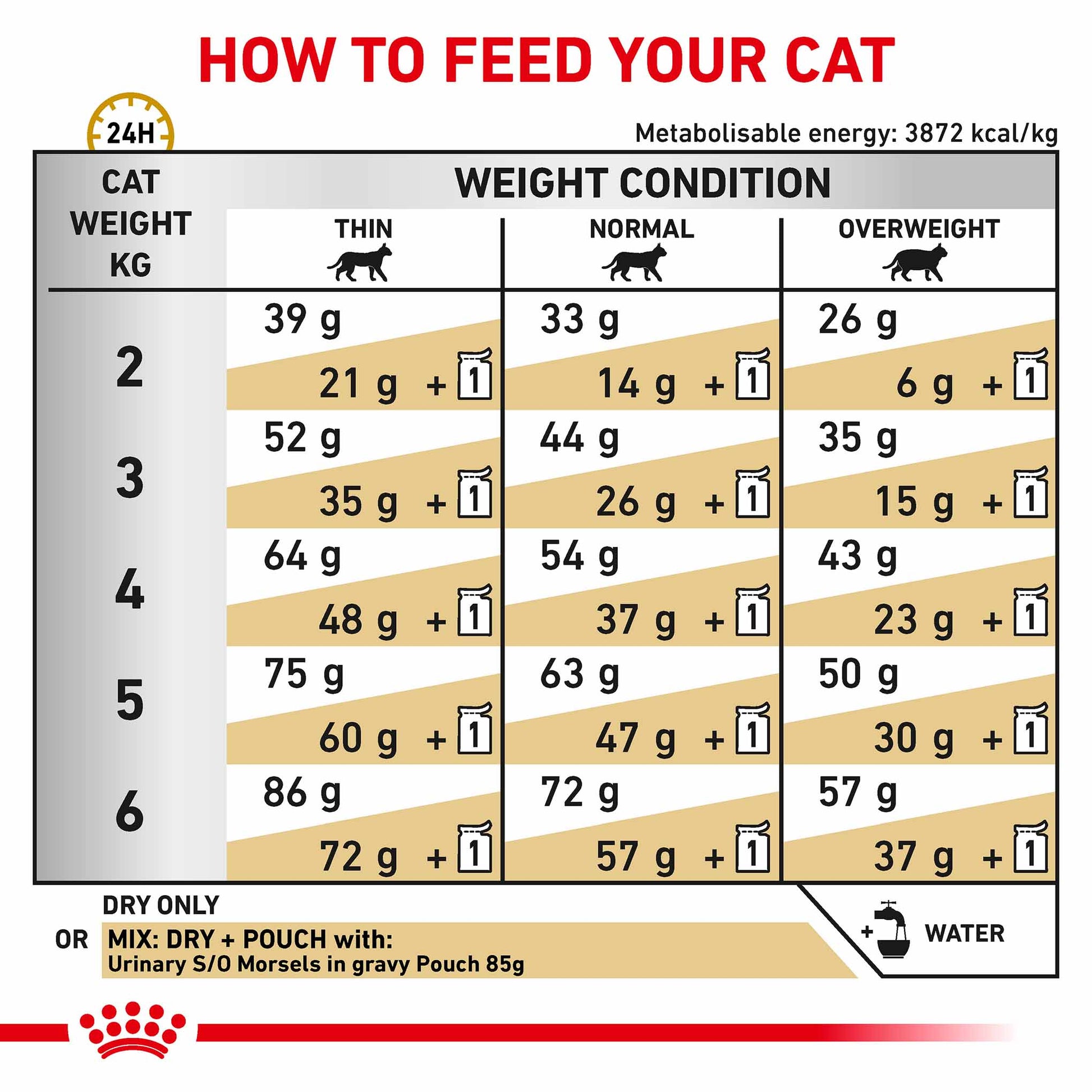As part of the ROYAL CANIN® Veterinary Range, it is important that this product is only given to your pet when recommended by a veterinary professional. To cater to the individual preferences of each cat, ROYAL CANIN® Urinary S/O is also available as wet food with morsels in gravy, or in a loaf format. Please ensure you follow the correct rationing amount, especially when mixed feeding.