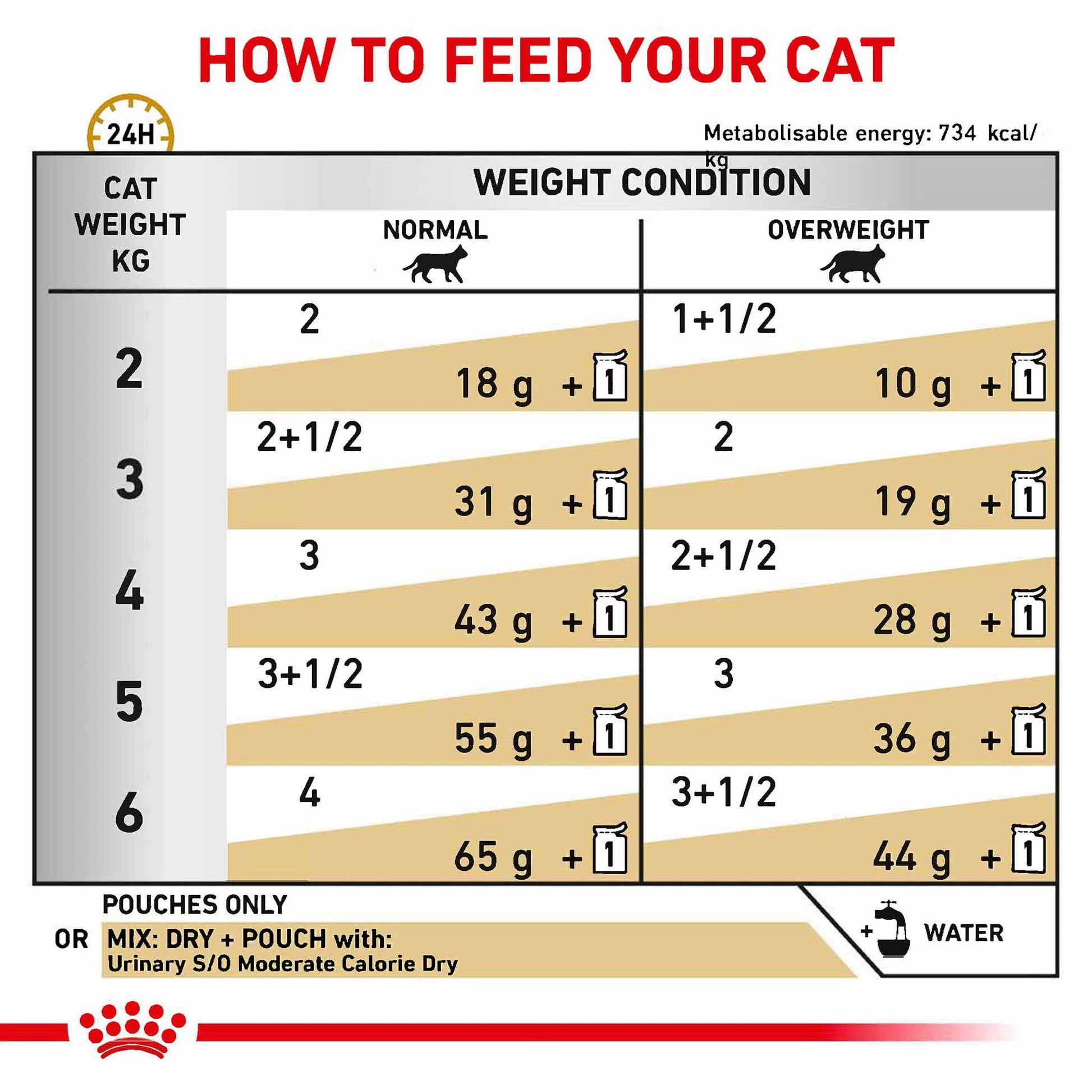 As part of the ROYAL CANIN® Veterinary Range, it is important that this product is only given to your pet when recommended by a veterinary professional. To cater to the individual preferences of each cat, ROYAL CANIN® Urinary S/O is also available as a soft and tasty loaf, or as dry food with crunchy and tasty kibble Please ensure you follow the correct rationing amount, especially when mixed feeding.
