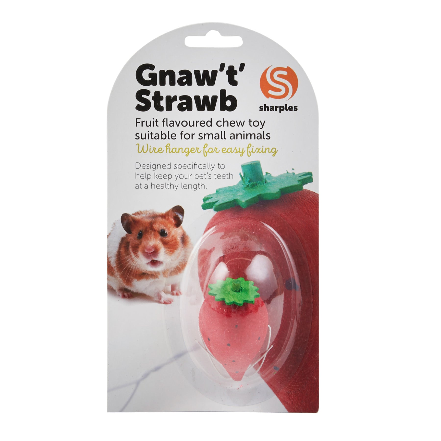 Sharples & Grant Gnaw t Strawb is a natural, fruit flavoured wooden chew toy for your animal to spend hours nibbling. Designed specifically to help keep your pets teeth at a healthy length.