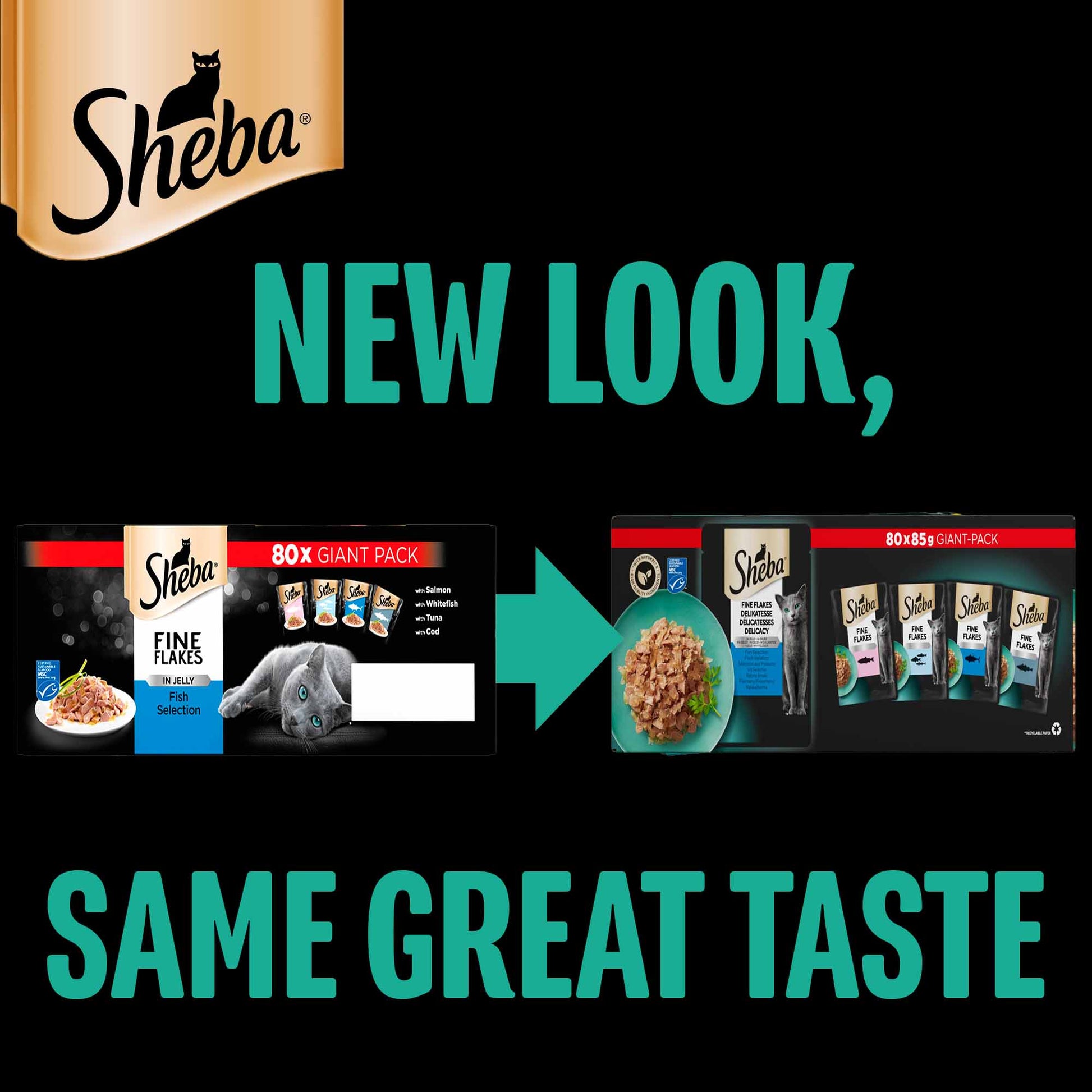 SHEBA Fine Flakes Adult Wet Cat Food in Jelly - Fish - 80x85g Pouches