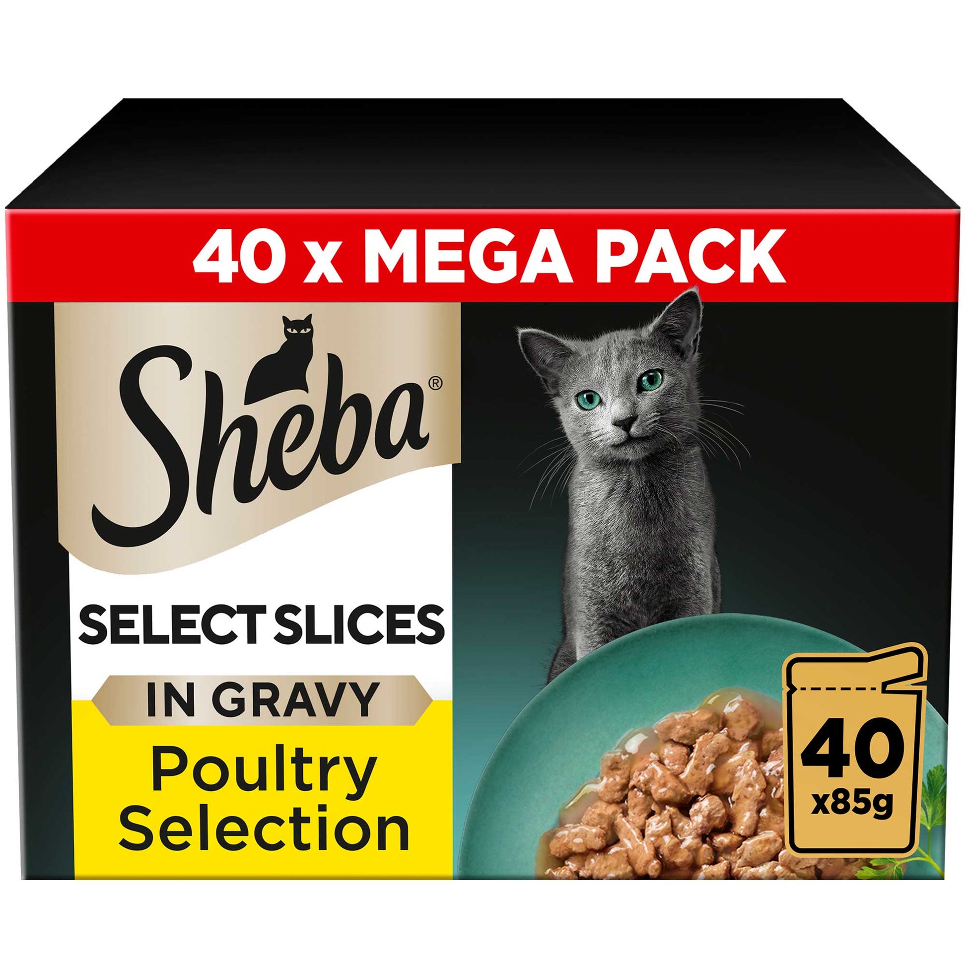 SHEBA Select Slices Adult Wet Cat Food in Gravy - Poultry - 40x85g Pouches
