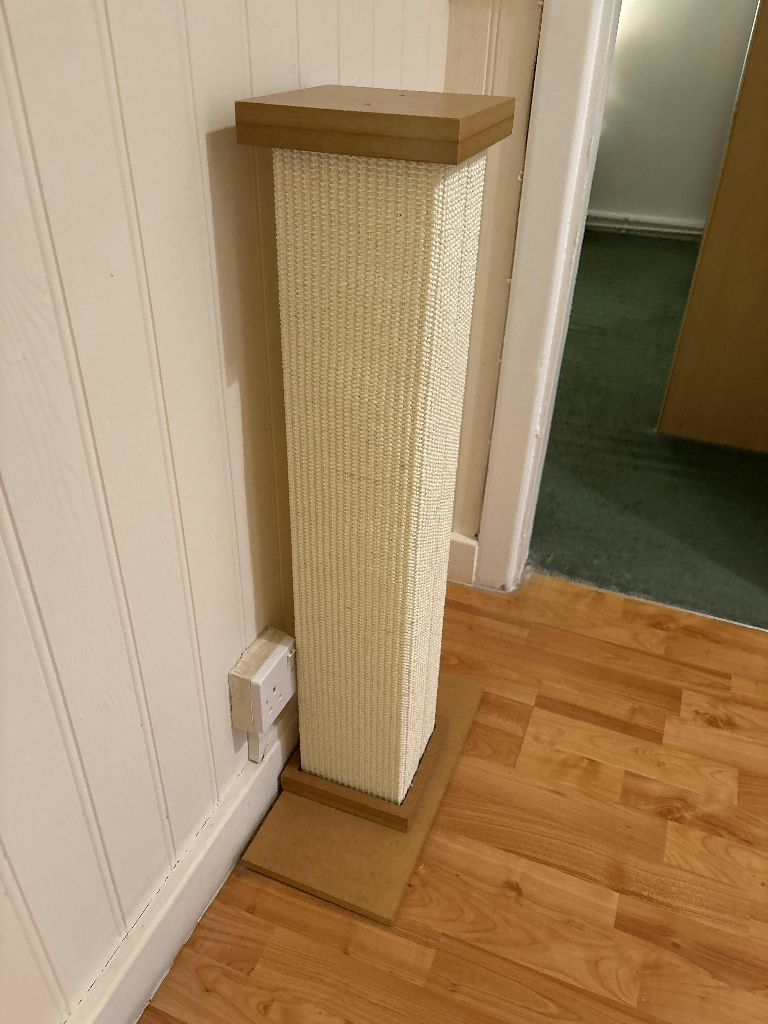 It is a fabulous, heavy and sturdy scratching post that will not only fit in with any home décor but also last for years. The base is made from varnished mdf in two parts for extra durability, and the fibrous woven sisal means that your feline friend will get much more use out of it than a cat scratcher with wound sisal.