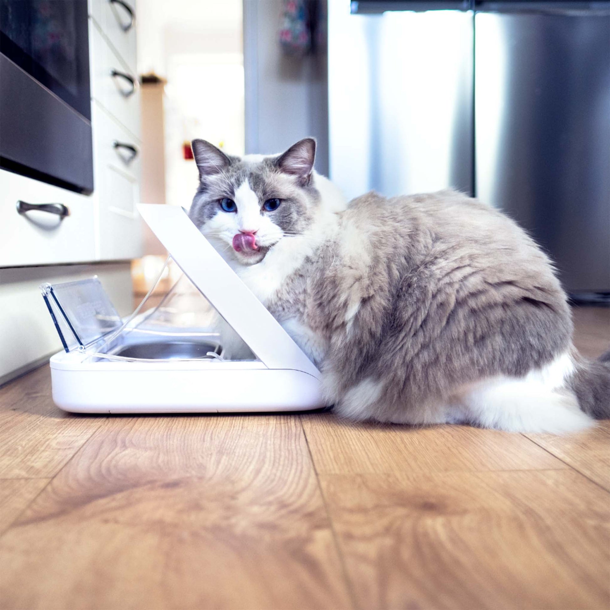 Ever wondered if you are overfeeding your pet? And do you know exactly what they are eating? The SureFeed Microchip Pet Feeder Connect has integrated scales to help you to set the food weight for each food serving for up to two food types. Using the Sure Petcare app, set the desired portion weight for either a single bowl or two split bowls, ideal if you are feeding wet and dry together. It’s the perfect feeding solution for overweight cats, cats with medical conditions that require close monitoring of feeding or multi-pet homes where one pet steals another pet’s food.