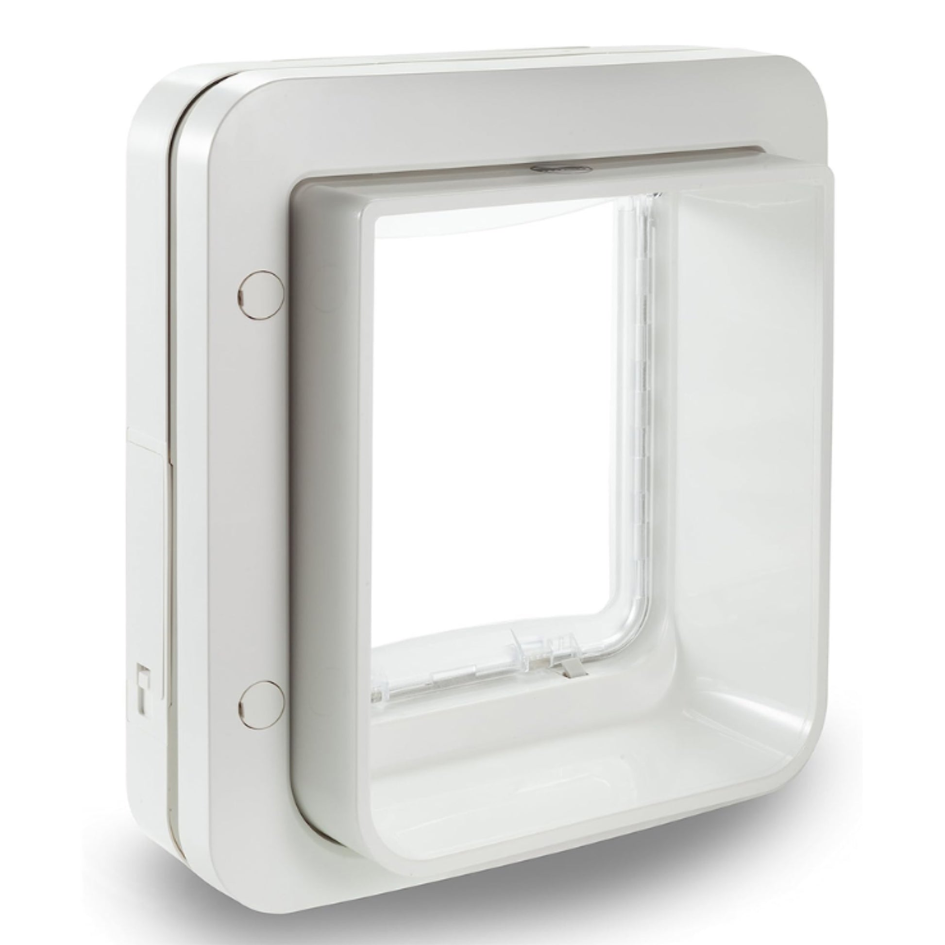 - Selective entry – any animal can exit. The microchip reader is located on the exterior of the pet door only