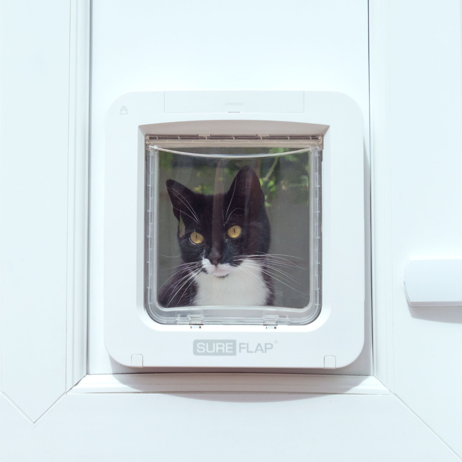 The Sureflap Pet door was easy to fit - it is quite a bit bigger than the catflap it replaced, but our big cats appreciate it. It is really easy to set up and the App is very informative and gives a good record of how our cats are spending their time. I have already convinced two friends to upgrade their catflaps and would definitely recommend this to anyone. It appears a little expensive, but given how much control it gives you and real time information I think it is value for money.