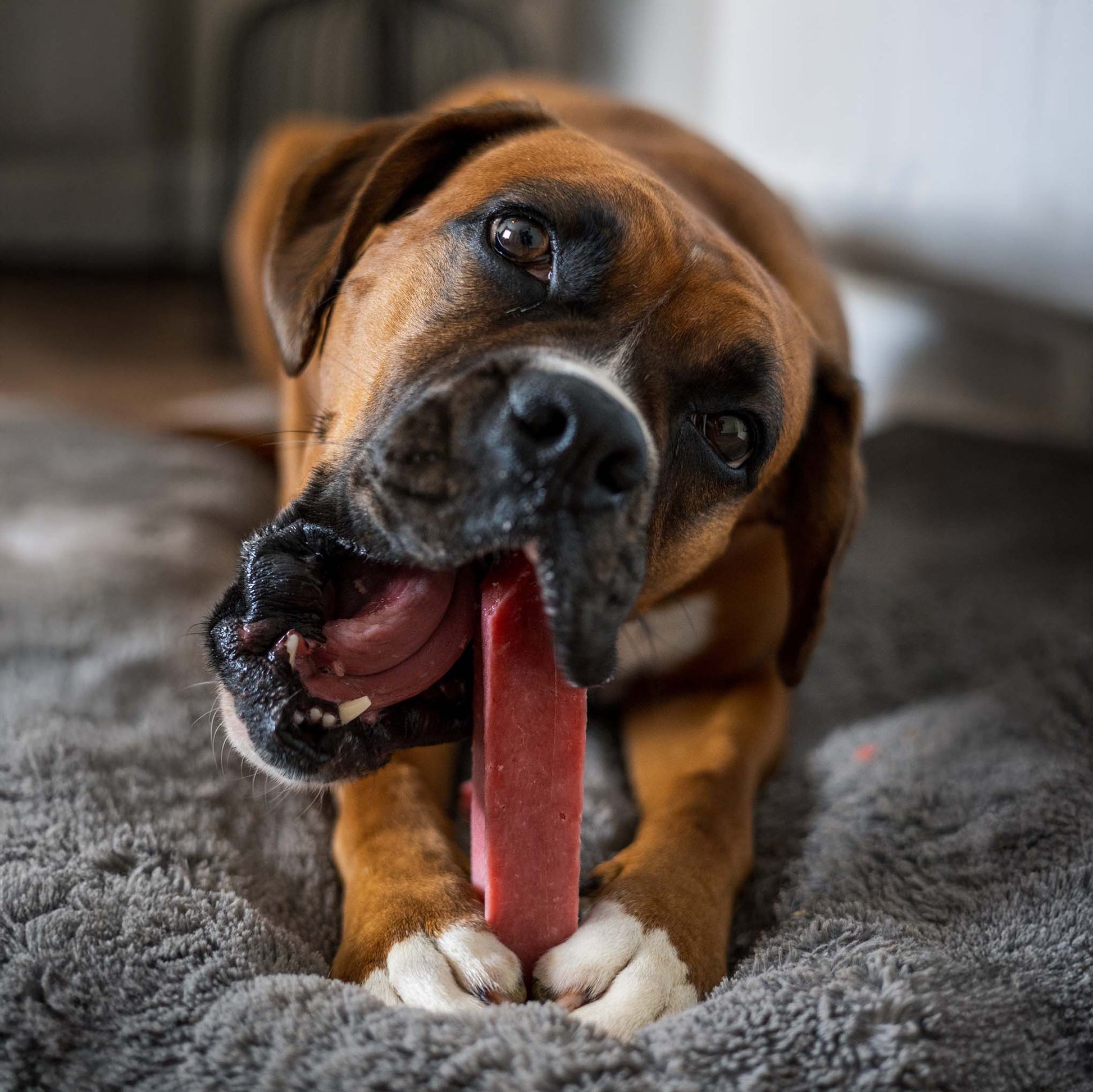 Thistlers Yak Dog Chews are low in fat at only 5.2% so are a super healthy and tasty treat your dog, they are also long-lasting, natural, gluten-free, rich in calcium and protein, these vegetarian chews are a hard cheese that slowly softens as the dog chews on it which means they are great for removing plaque and promoting oral health.