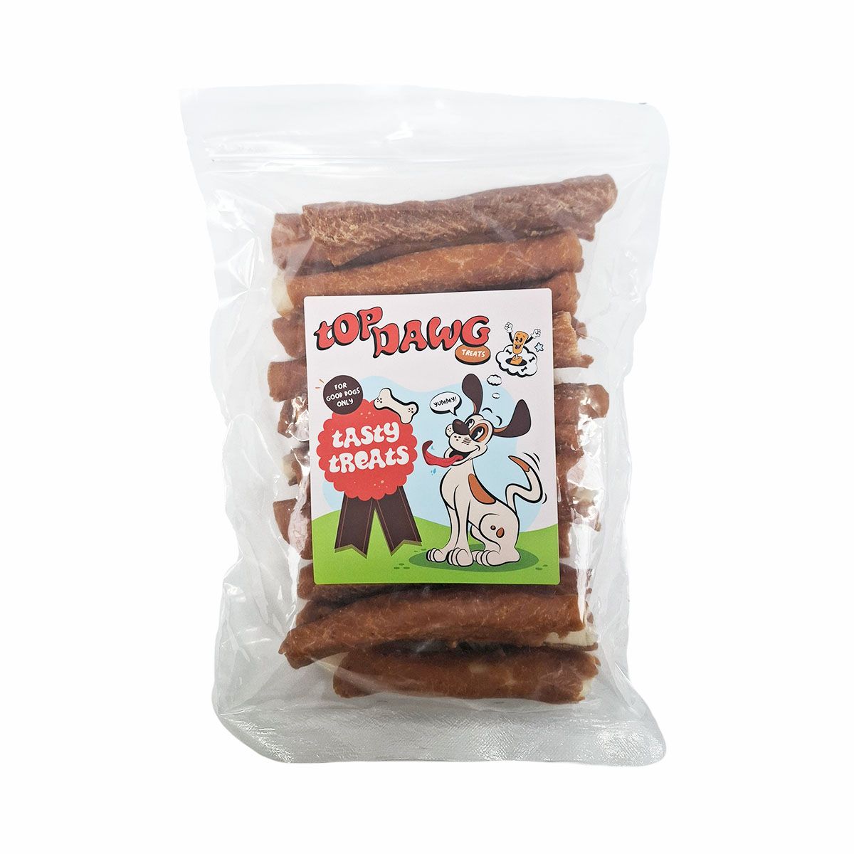 These Top Dawg Chicken Large Rolls Dog Treats are made with natural duck breast meat and are sure to get your dogs’ tail wagging. Super scrummy duck is wrapped around a chewy rawhide centre, creating the perfect treat for rewarding your pooch at home or whilst out and about.