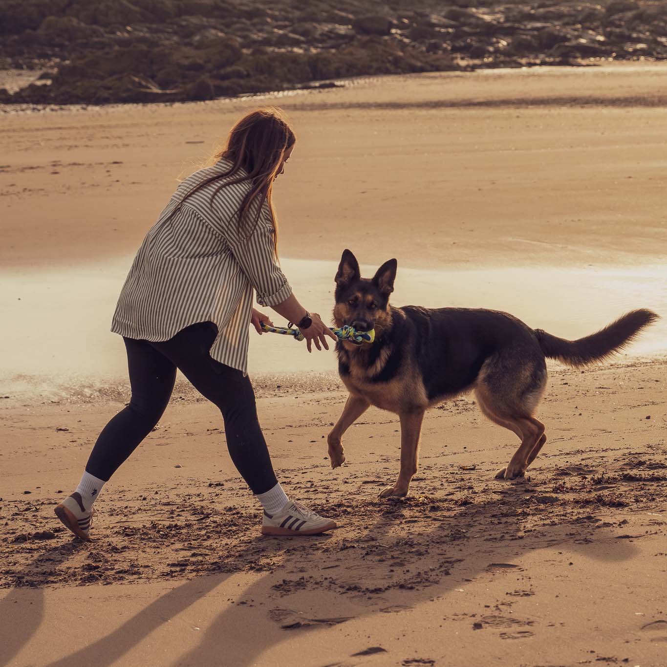 If your dog is constantly losing his/her ball then this is the toy for you. Having the ball on the rope allows the ball to be easily spotted whilst out on your walks. The added extra is the game of tuggy!