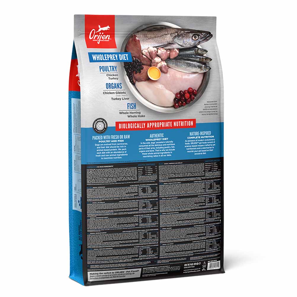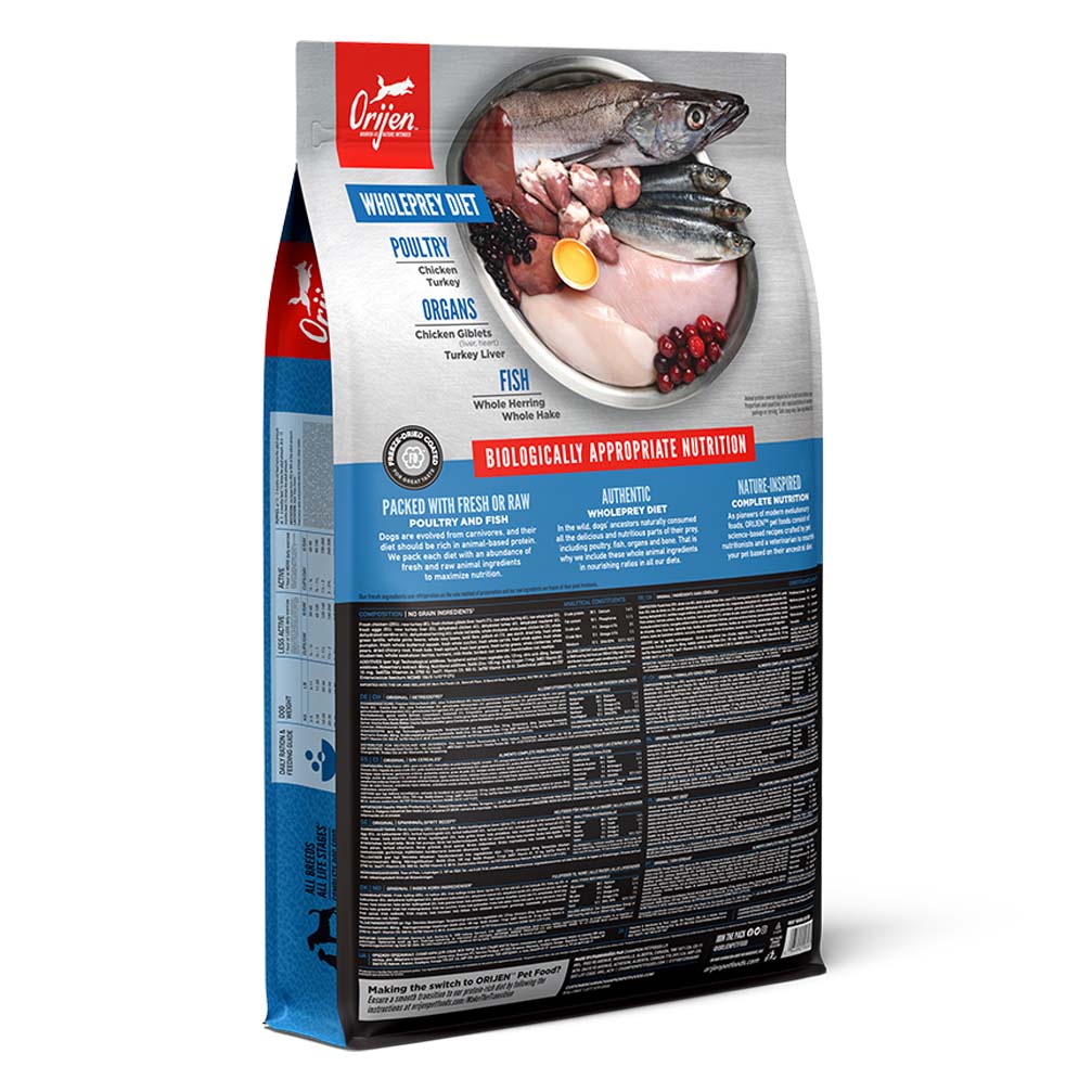 - This authentic WholePrey diet features the most succulent parts of the prey like poultry or fish, organs and bone to mimic what your dog’s ancestors consumed in the wild.