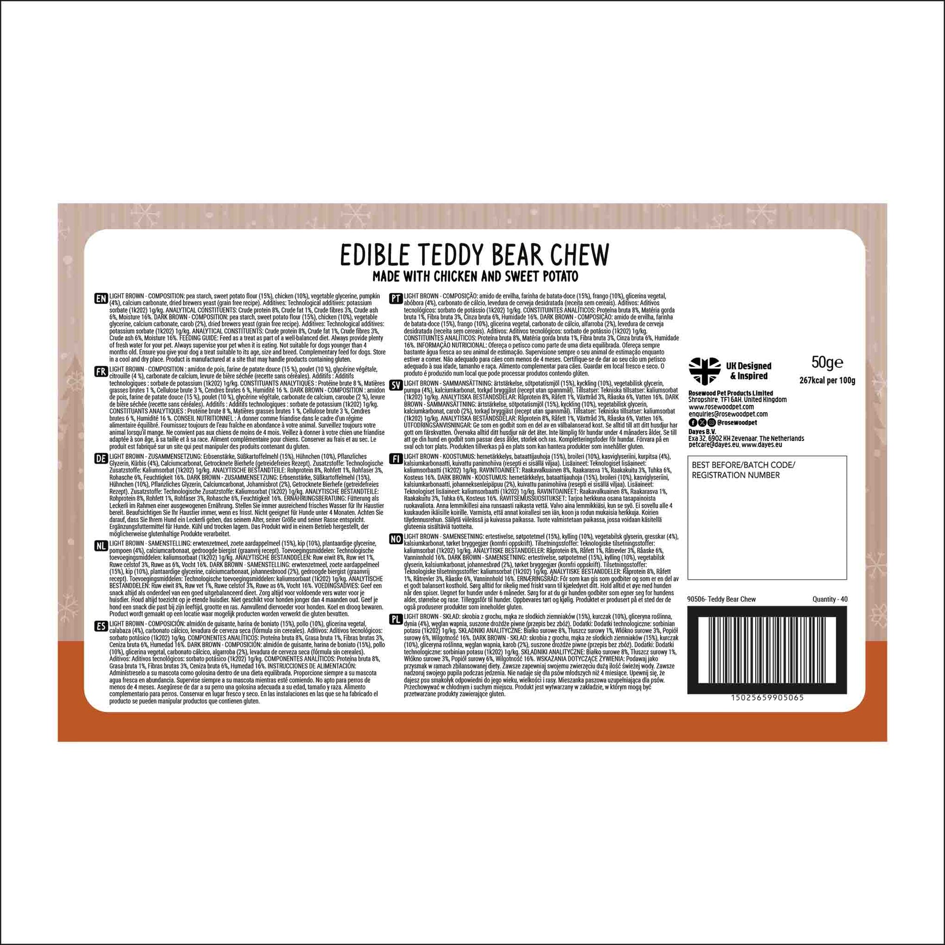 Rosewood Cupid & Comet Festive Teddy Bear Dog Chew - 50g